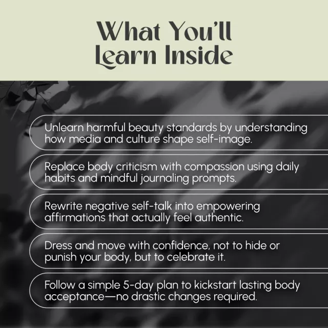 You deserve to look in the mirror and smile at what you see. Click “Add to Cart” now to download your guide instantly and begin your journey to radical self-acceptance. Your future confident self is waiting!
