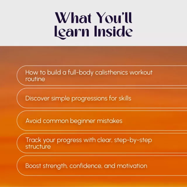 Start your fitness journey with confidence using Bodyweight Mastery: The Ultimate Beginner’s Guide to Calisthenics Workouts—a digital guide designed for everyday people who want to build muscle, gain strength, and improve overall fitness without expensive equipment or gym memberships. Whether you’re new to working out or tired of traditional routines, this guide introduces a fun, flexible, and empowering way to move your body through calisthenics. Accessible and easy to follow, it’s your complete roadmap to mastering the calisthenics workout routine, all from the comfort of home.