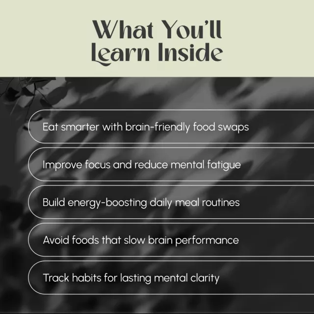 From food good for brain function to daily menu planning and habit-building strategies, this PDF is packed with expert insights and practical tips you can implement right away. Make smarter food choices, avoid common energy-draining mistakes, and turn your daily meals into a strategy for sharper thinking.