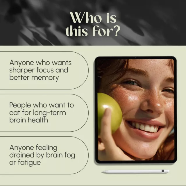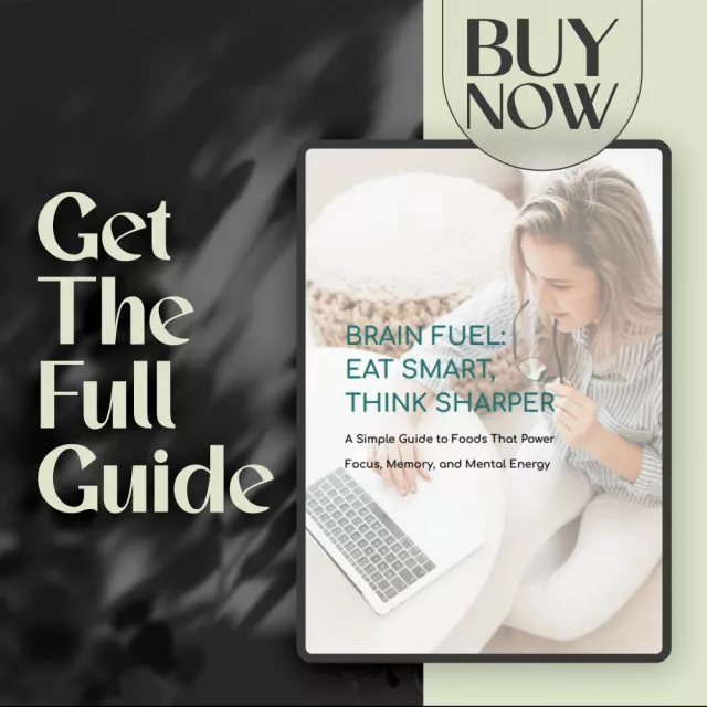 This guide is perfect for anyone looking to support better brain health through food—students, professionals, entrepreneurs, busy parents, or anyone tired of brain fog and mental fatigue. If you want to focus longer, learn faster, and feel more mentally energized, this is for you.