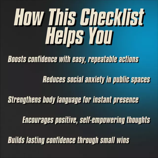 Unlike lengthy eBooks or vague advice posts, this checklist gets straight to the point. It’s practical, uplifting, and laser-focused on helping you build confidence where it counts most—out in the real world. If you’ve ever Googled “how to be confident in public places” and felt overwhelmed, this is the clear, actionable answer you’ve been looking for.