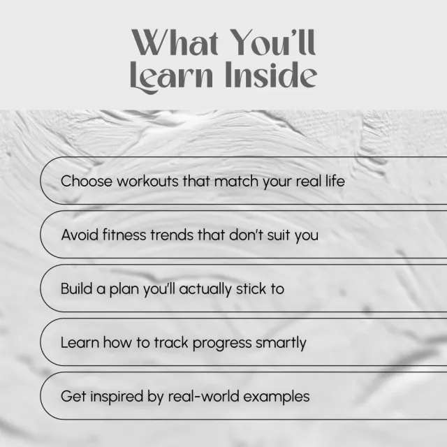 Unlike generic workout eBooks, Fit Your Way starts with you—not a pre-made plan. You won’t be told what to do. Instead, you’ll learn how to pick a workout routine that feels natural, fun, and sustainable. It’s fitness without pressure, and that’s what makes it stick.
