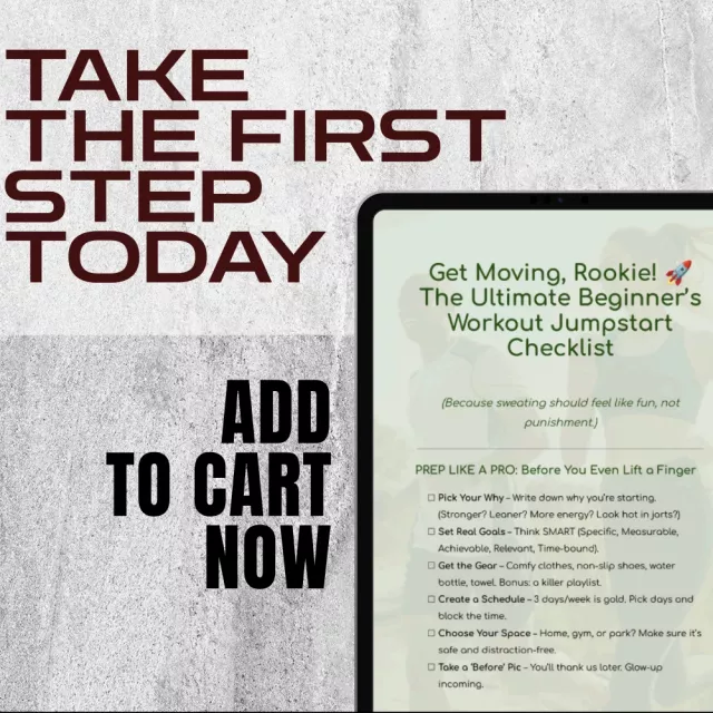 No fancy equipment or gym membership required. Just real, actionable steps in one downloadable PDF to help you prep, move, and stay consistent. This isn’t just a checklist—it’s your personal cheerleader, trainer, and progress tracker all in one.