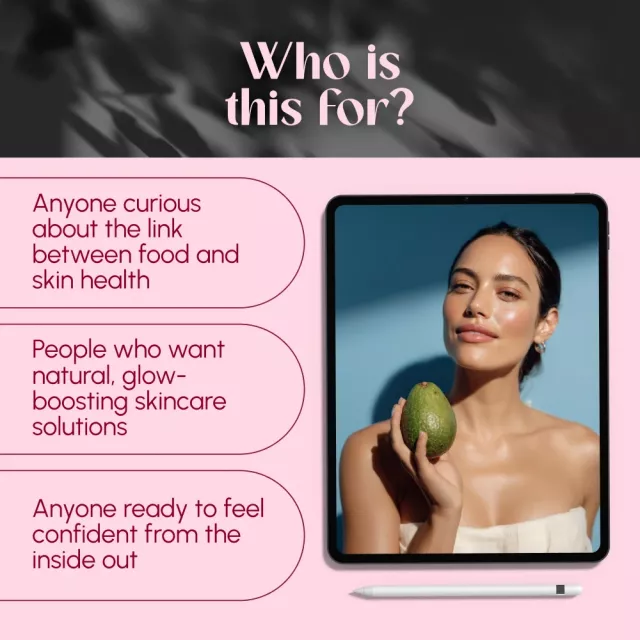 This guide is perfect for anyone looking to improve their complexion through foodâwhether you’re dealing with acne, dryness, uneven tone, or just want that healthy glow. Itâs especially helpful for those tired of skincare products that overpromise and underdeliver. If youâre curious about using healthy food for skin as a natural path to beauty, this guide is made for you.