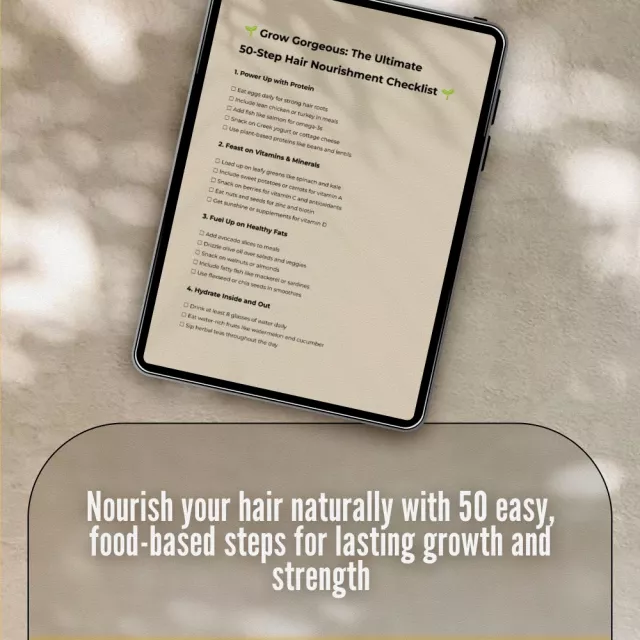 Ready to grow the gorgeous hair youâve always dreamed ofânaturally? Whether youâre struggling with hair thinning, breakage, or just want stronger, shinier strands, Grow Gorgeous: The Ultimate 50-Step Hair Nourishment Checklist is your go-to digital guide. This downloadable, easy-to-follow checklist helps you fuel your hair with the nutrients it craves. Designed with real, everyday foods and practical wellness habits, this checklist breaks down everything you need to know to nourish your hairâstep by step.