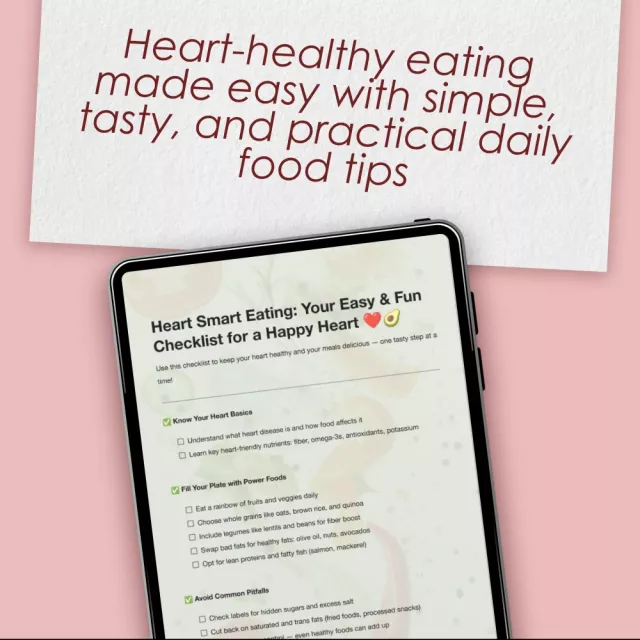 Start living heart-smart with ease and excitement. Heart Smart Eating: Your Easy & Fun Checklist for a Happy Heart is more than a guide — it’s your friendly, encouraging nudge toward better habits and a stronger heart. Hit “Download” now and give your heart the love it deserves — one smart bite at a time!