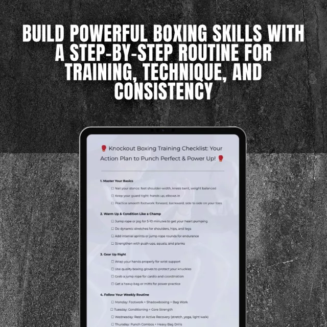 Stop guessing what to do next in your boxing training routine. The Knockout Boxing Training Checklist: Your Action Plan to Punch Perfect & Power Up gives you everything you need to get started, stay consistent, and make real progress. Whether you’re in the gym or training at home, this guide is your corner coach.