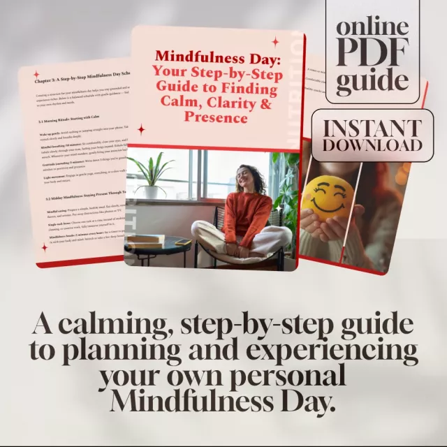 Looking to slow down, recharge, and reconnect with yourself? Mindfulness Day: Your Step-by-Step Guide to Finding Calm, Clarity & Presence is your perfect digital companion for creating a powerful, intentional day of mental clarity and emotional peace. Whether you’re a mindfulness beginner or a seasoned meditator, this beautifully crafted guide helps you design your very own Mindfulness Day with ease and intention. Download instantly and start building a life filled with calm, focus, and presence—one mindful moment at a time.