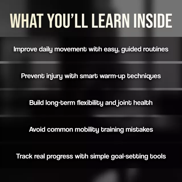 This isn’t just another flexibility program. “Move Freely” is a comprehensive, no-fluff guide that helps you understand the why behind your mobility workout routine. It’s built with realistic, sustainable progress in mind—so you don’t burn out, overdo it, or get stuck. It empowers you to take control of your movement journey for the long term.