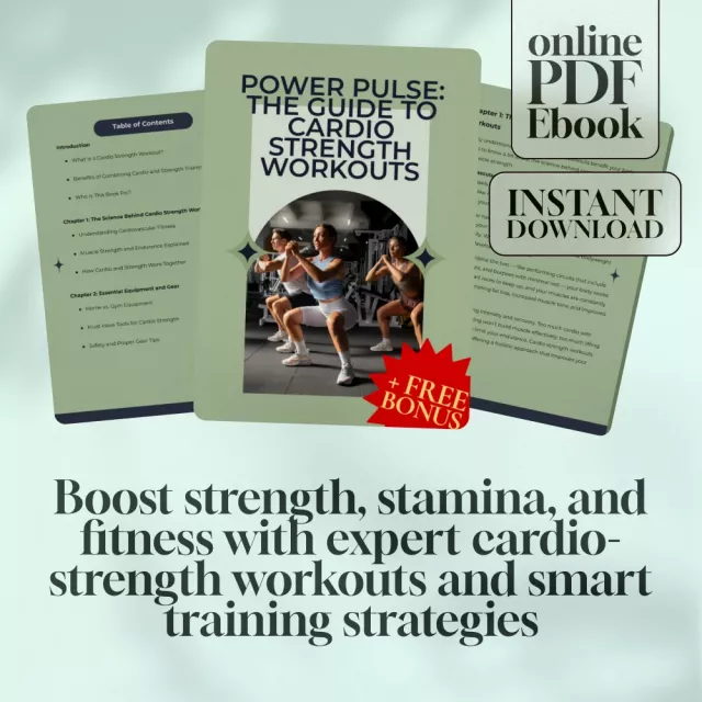 Ready to supercharge your workouts and finally get results that stick? Power Pulse: The Guide to Cardio Strength Workouts is your complete digital guide to mastering the cardio strength workout method—designed for all fitness levels, from beginners to seasoned athletes. Whether you’re looking to build endurance, gain muscle, or burn fat more effectively, this downloadable eBook gives you a practical, science-backed approach to training smarter and stronger. Perfect for anyone who wants a flexible routine that works at home or in the gym, this guide puts the power in your hands—literally.