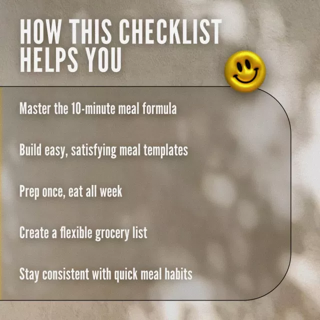 This checklist is made for busy professionals, students, parents, or anyone who wants to eat better without spending hours in the kitchen. Whether youâre new to cooking or just looking for a fresh system, this guide simplifies the process of creating quick nutritious mealsâno complicated recipes, no overwhelm.