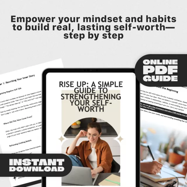If you’re tired of feeling not good enough, stuck in self-doubt, or constantly questioning your worth, you’re not alone—and you’re not powerless. Rise Up: A Simple Guide to Strengthening Your Self-Worth is a digital guide designed to help you break free from negative self-talk and start building a life rooted in confidence, clarity, and self-respect. Whether you’re just starting your personal growth journey or seeking ways to improve self worth after a setback, this beautifully structured, practical guide gives you the tools and mindset shifts you need to start rising today.