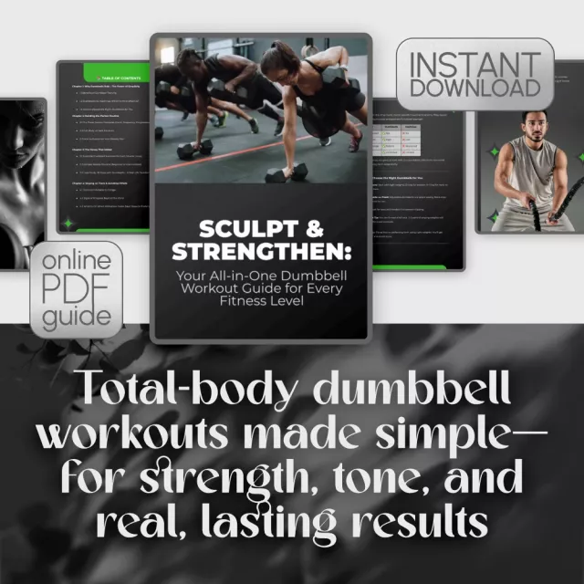 Download Sculpt & Strengthen: Your All-in-One Dumbbell Workout Guide for Every Fitness Level now and take the first step toward a stronger, more confident you. Your journey to mastering your dumbbell workout routine starts here—no excuses, just results.