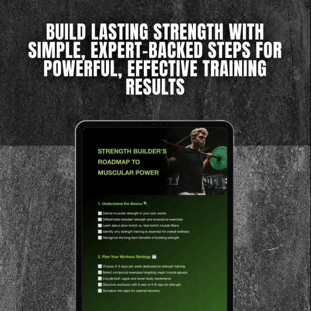 If you’re ready to unlock your full physical potential, the Strength Builder’s Roadmap to Muscular Power is your go-to digital checklist for building real, lasting muscular strength. Whether you’re just starting your fitness journey or looking to improve your current routine, this structured, easy-to-follow guide breaks down everything you need to know. Designed to walk you through the fundamentals of strength training, this checklist equips you with clear action steps, practical knowledge, and a focused plan to help you lift stronger and train smarter—right from your first workout.