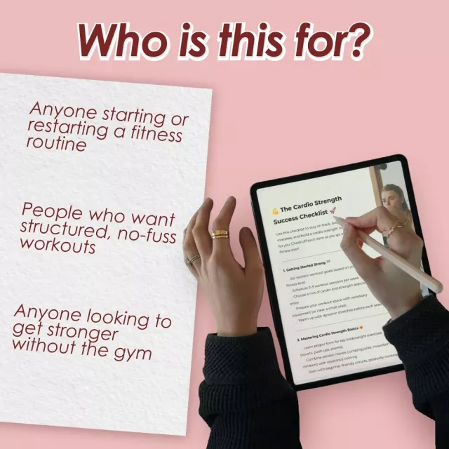 Don’t wait for the “perfect Monday” to start your fitness routine. The Cardio Strength Success Checklist is available for instant digital download so you can begin your transformation today. Grab your copy, print it out, and make your cardio strength workout plan work for you—starting now.
