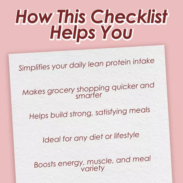 This isnât just another nutrition PDFâitâs a lively, easy-to-use checklist packed with real-life food tips, smart swaps, and grocery hacks that make healthy eating feel doable and even fun. From breakfast to dinner, from kitchen to commute, youâll have a plan for lean protein in every situation.