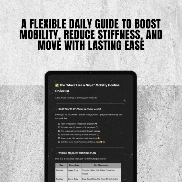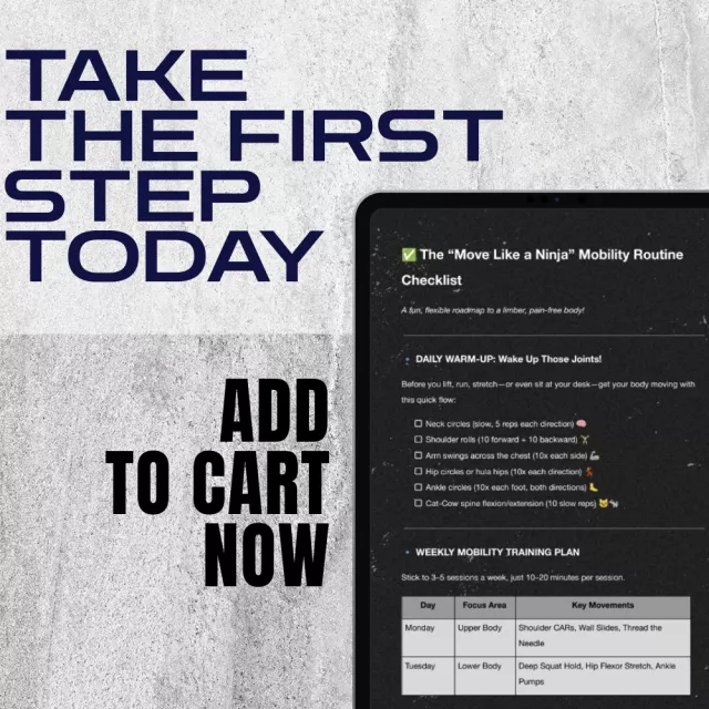 Download the “Move Like a Ninja” Mobility Routine Checklist today and take the first step toward a more flexible, fluid, and fun body. It’s time to turn movement into your daily superpower. Grab your copy now and start your mobility workout routine today—because you deserve to move and feel your best, every day.
