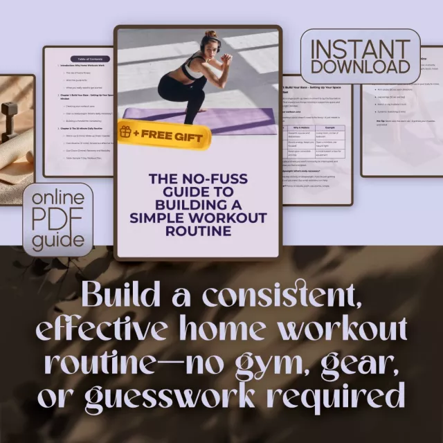 Unlike other digital resources that can be too complex or demand expensive equipment, this guide focuses on simplicity, consistency, and doing what actually works. You won’t find fluff—just a practical, well-structured plan for building a simple workout routine at home.