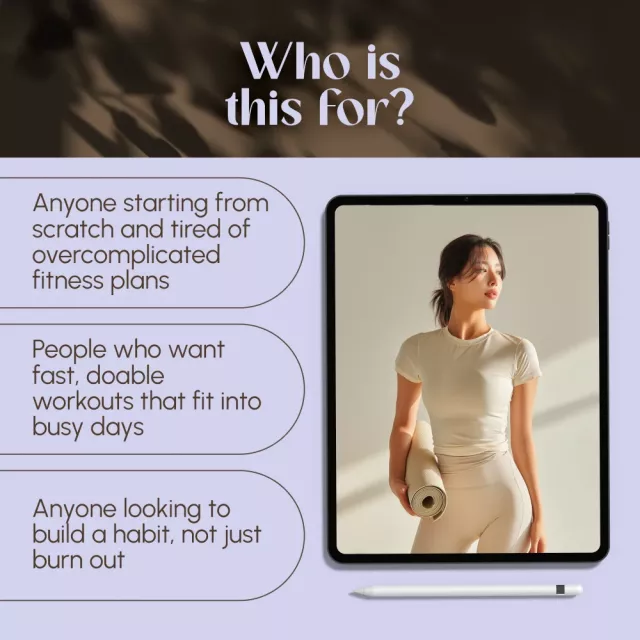 This guide is perfect for busy beginners, people returning to fitness, or anyone wanting a no-nonsense approach to staying active. If you’re tired of programs that overpromise and underdeliver, this guide will meet you where you are and help you move forward—one simple step at a time.