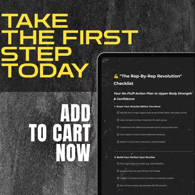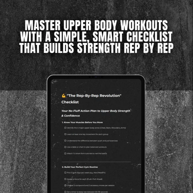 Download “The Rep-By-Rep Revolution” Checklist now and take the guesswork out of your gym days. Itâs time to train smarter, get stronger, and stay consistentâwith a plan thatâs as focused as you are. Your upper body strength transformation starts here.