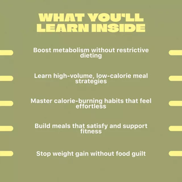Unlike other digital resources, The Smart Eater’s Guide To Eating Big And Staying Fit doesn’t just list healthy foods or repeat vague advice. It combines easy-to-understand science, relatable examples, visual tables, and flexible prompts to help you apply the tips to your real life. You’ll finally understand how to eat a lot and not gain weight — and why the key isn’t restriction, but strategy.