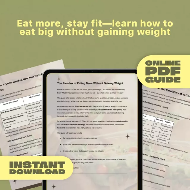 Imagine eating big, satisfying meals without watching the scale creep up. Sounds too good to be true? Not anymore. The Smart Eater’s Guide To Eating Big And Staying Fit is your go-to digital guide for discovering exactly how to eat a lot and not gain weight — without counting every calorie or feeling restricted. Backed by real science and packed with practical strategies, this downloadable guide is perfect for anyone who loves food but wants to stay fit, energized, and in control. Whether you’re trying to boost your metabolism or ditch the “eat less, move more” myth, this guide will change how you think about eating forever.
