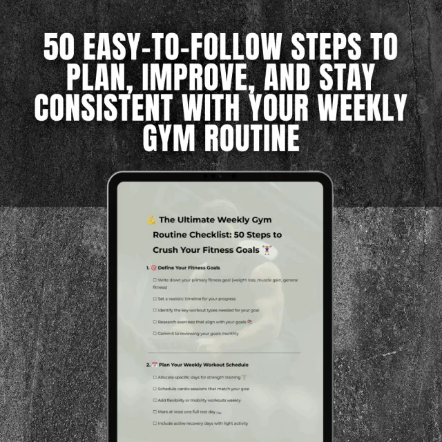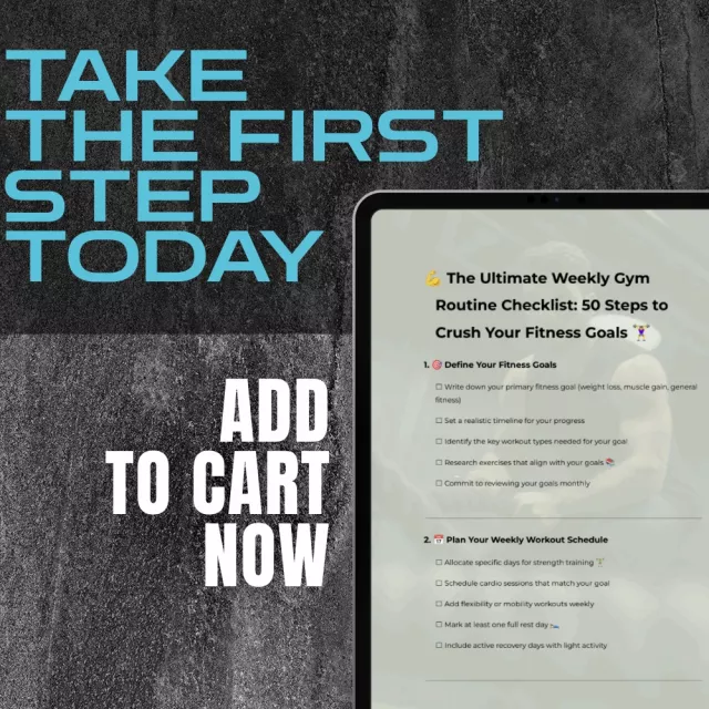 Download The Ultimate Weekly Gym Routine Checklist: 50 Steps to Crush Your Fitness Goals today and start seeing real progressâone step at a time. Say goodbye to inconsistent workouts and hello to the structured plan your body (and schedule) needs. Your transformation starts here.