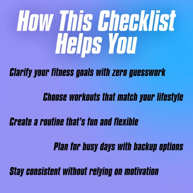 This checklist is perfect for beginners, returners, or anyone looking to make their fitness journey less confusing and more motivating. If you’ve ever felt lost figuring out how to pick a workout routine, or frustrated by plans that don’t stick, this is for you.