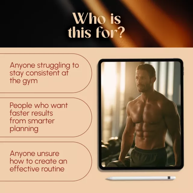 This digital download is ideal for anyone looking to build a weekly gym routine they can actually stick to. Whether you’re a beginner overwhelmed by options or someone returning to fitness, this guide gives you the structure and tools you need to succeed.