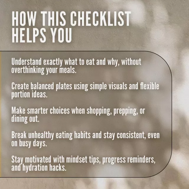 Unlike long, complicated diet books, this checklist is a practical, no-stress resource focused on doable daily actions. It’s visually engaging, quick to read, and designed to fit real life. Plus, it doesn’t just help you eat better—it inspires you to thrive through mindset and motivation support.