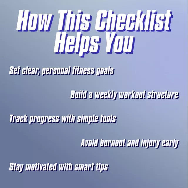 This checklist is made for anyone who wants to take ownership of their fitnessâno trainer required. Ideal for home workout warriors, gym-goers, or anyone tired of generic fitness plans that just donât stick. If youâre motivated to create a plan that works with your life and finally achieve your goals, this is for you.